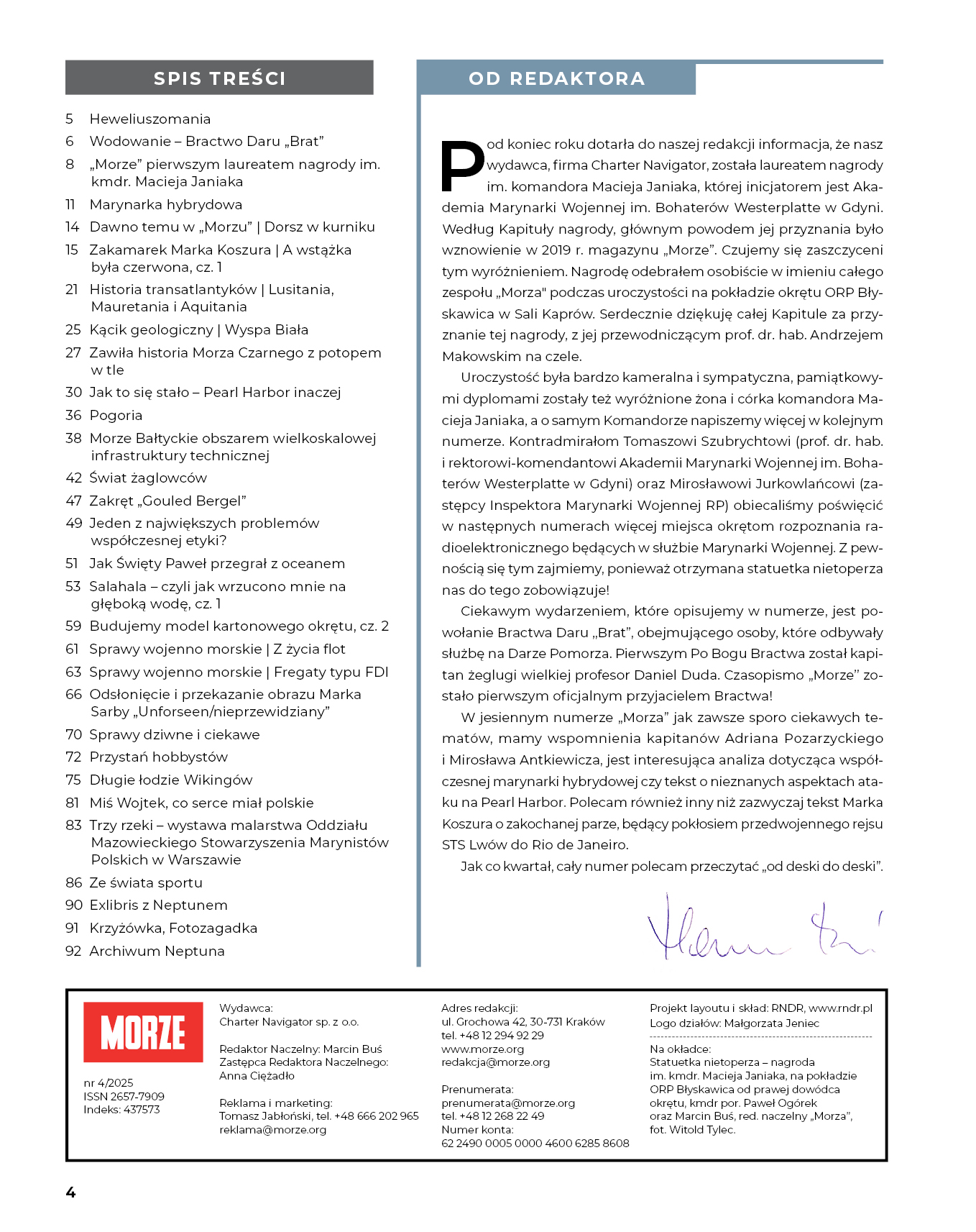 Numer zima 2025 czasopisma MORZE (wersja drukowana lub elektroniczna).